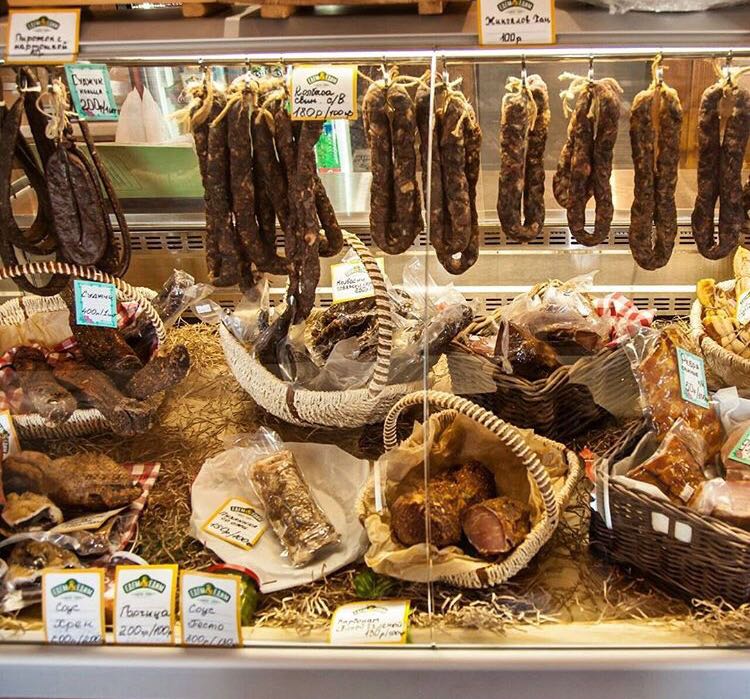"Фермерский буфет" готов Вас радовать сырами собственного производства, мясом вяленым, копченым, продуктами из Греции, маслом разных видов, свежеиспеченными чебуреками, пиццей!